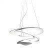 Aertemide Pirce Mini suspension lamp designed by Giuseppe Maurizio Scutellà, is not just a suspension lamp, it is an elegant and alluring decoration with a strong sense of presence turned on or off. Its slim disc merges softly into flowing twirls that spiral downwards to create alluring lighting effects.