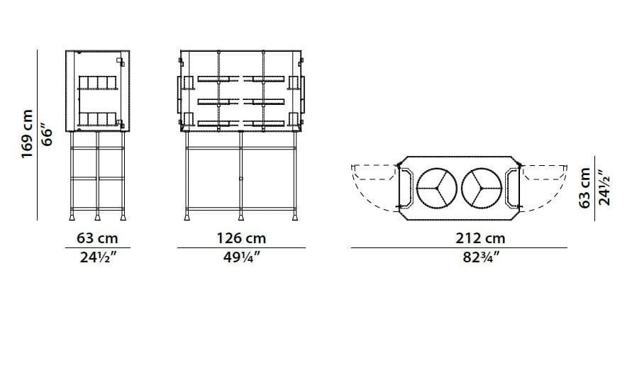Baxter Float is a bar cabinet designed by Pietro Russo. This bar cabinet with its simple and linear shapes encloses a unique elegance among its extra-clear tempered glass doors, while the base and accessories to hold bottles and glasses are in matte satin brass. A transparent bar cabinet to be admired from any angle, in which to display your most precious bottles.