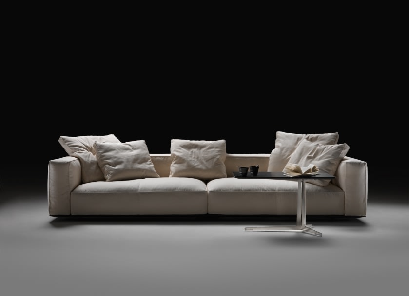 Grandemare is a sofa designed by Antonio Citterio for Flexform. Grandemare is a family of sofas for infinite combinations. Ample, generous, like a great sea, they enter the living area in a wide range of different configurations. The low back welcomes a series of small and large cushions in soft down, with optional contrasting grosgrain finish to add dynamism to the monolithic presence of the deep seat. Grandemare also comes in a bed version that replicates the proportions and aesthetic concept of the sofa.