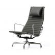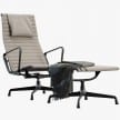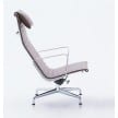 Vitra Aluminium Chair EA 124 and stool EA 125 was designed by Charles & Ray Eames in 1958. The chair is avaiable in different choice of fabic and leather. The base is made of alluminium. The chair's extraordinary comfort results from the extra-high backrest and head cushion in combination with the tilt mechanism, which can be adjusted to the user's weight. The swivel chair EA 124 can be paired with the stool EA 125, forming the perfect spot to put your feet up and enjoy a long, cosy evening with a good book. The Aluminium Chair EA 124 is the quintessential lounge model in the Aluminium Group by Charles and Ray Eames.